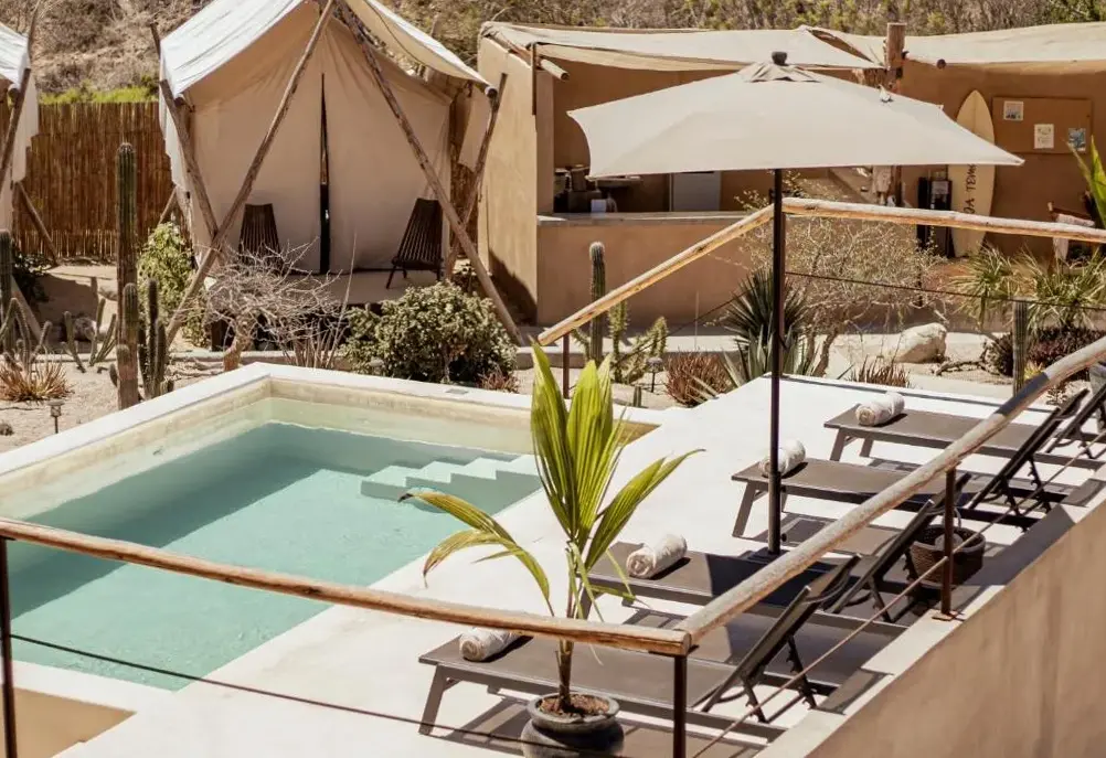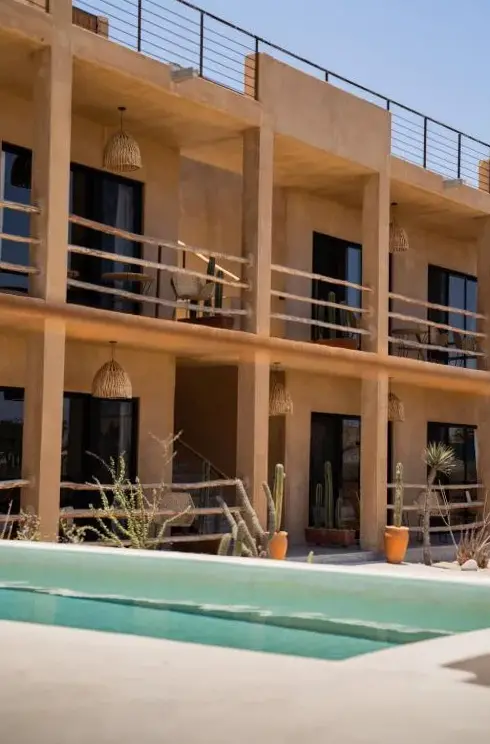 Baja Temple offers accommodations in La ahorcadita Las playitas, Todos Santos, Mexico. The property features free parking, an outdoor swimming pool, spa services, and non-smoking rooms. Guests can enjoy proximity to several local attractions including La Cachorra Beach, which is just 1,000 meters away, and Punta Lobos Beach located 4.4 kilometers from the premises. Nearby dining options like 5 Tacos and a Beer are within 150 meters, while Ristorante Tre Galline is situated 2.6 kilometers away. Additional recreational spots such as Sky Lounge Bar and Palm Beach are accessible within short distances. Travelers should note that the location is approximately 62 kilometers from Los Cabos International Airport, requiring a vehicle for convenient access.